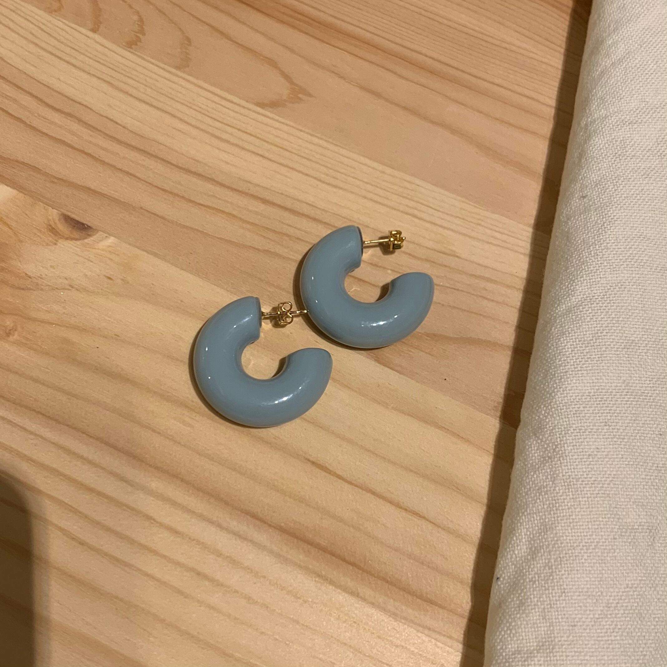 ぷっくりとした太めのフープピアス。
